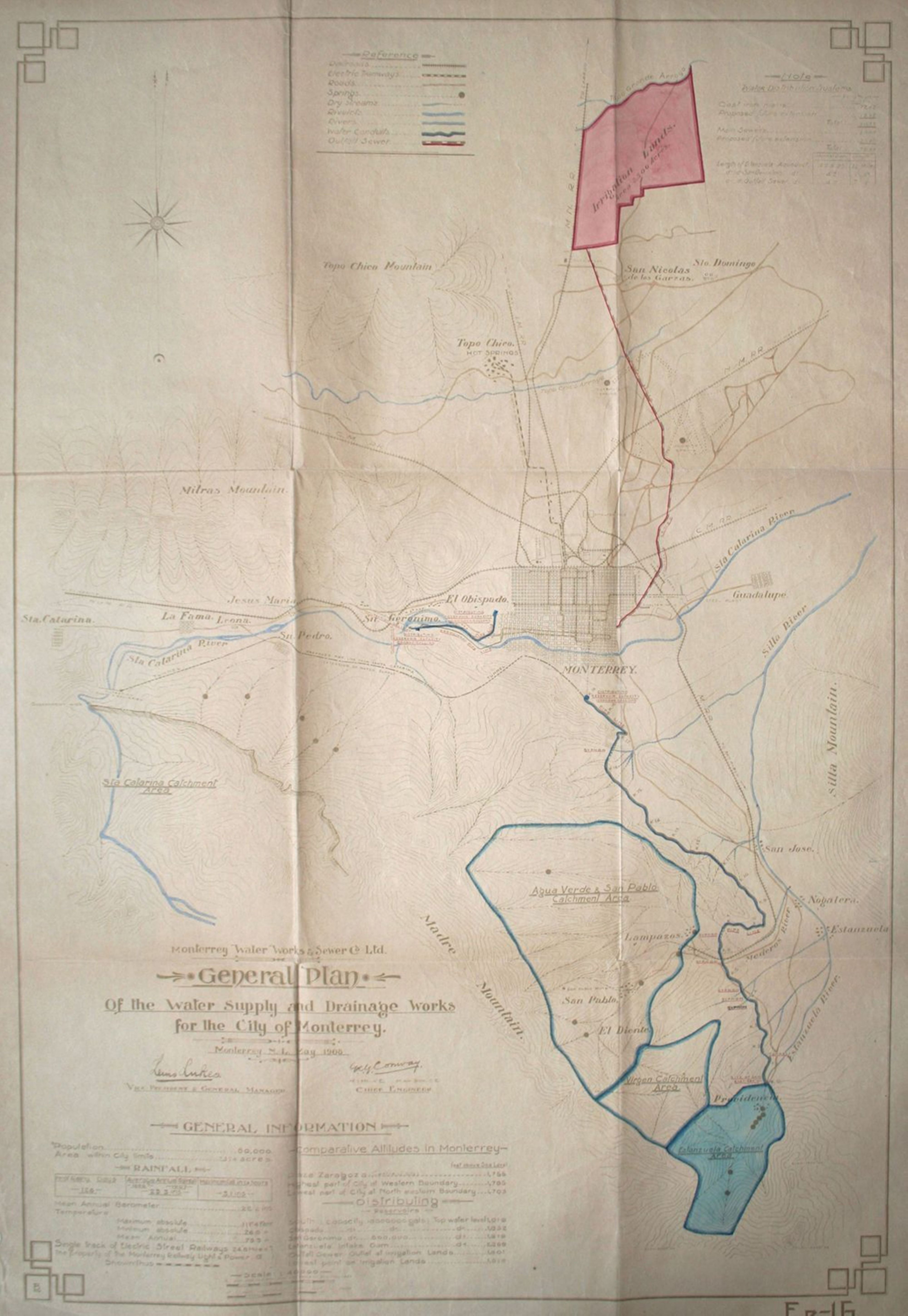 | Título | Plano general de las obras de abastecimiento de agua y drenaje de la Ciudad de Monterrey de 1908 |