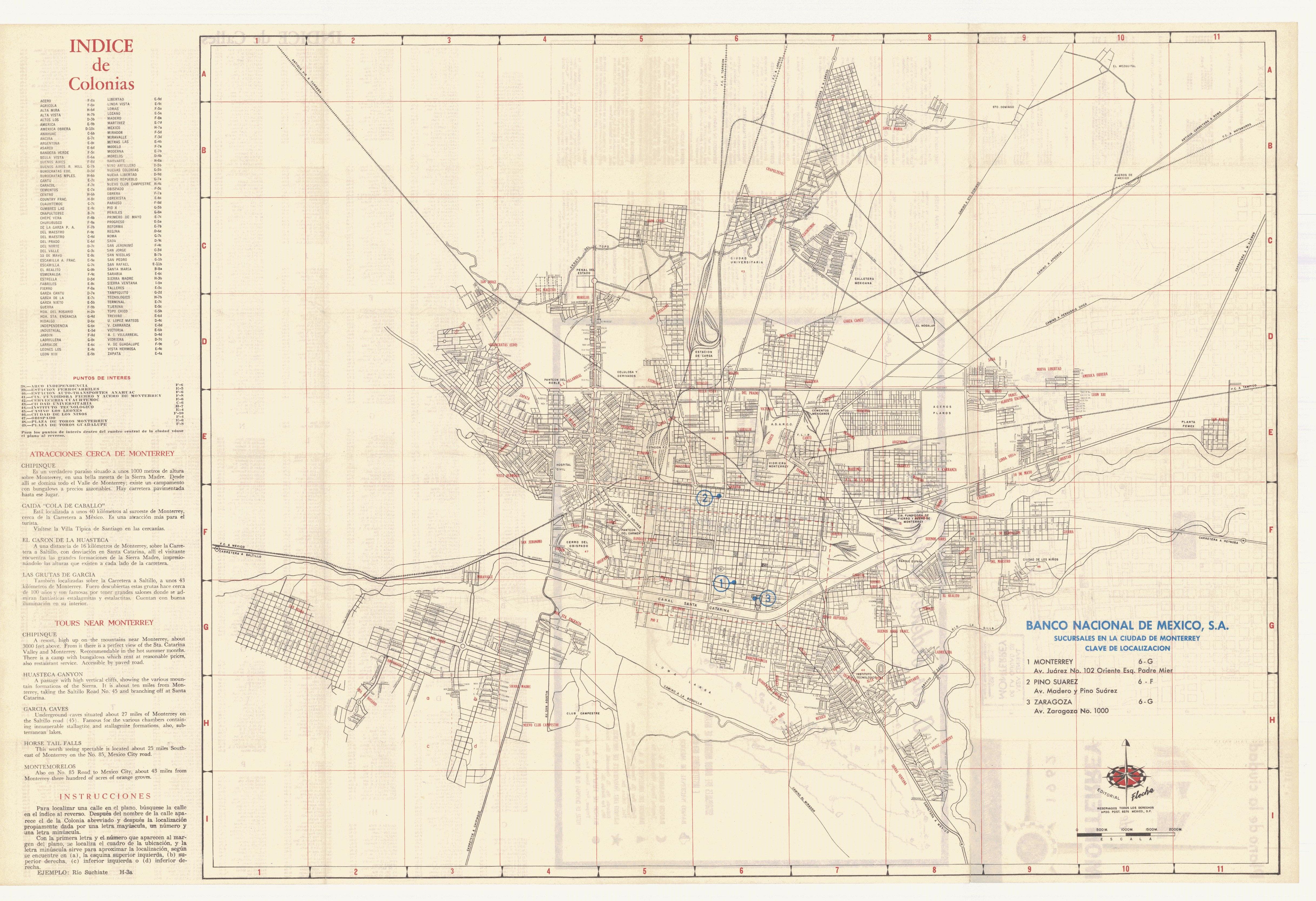 | Título | Plano de la Ciudad de Monterrey indicando las sucursales del Banco Nacional de México de 1962 |